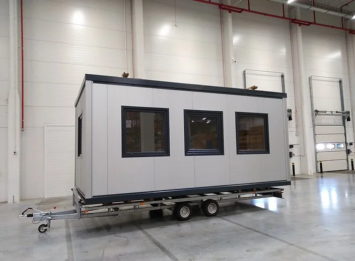 Installation Rapide : Grâce à sa structure autoportante, ce container de bureau est simple à transporter, poser et connecter.