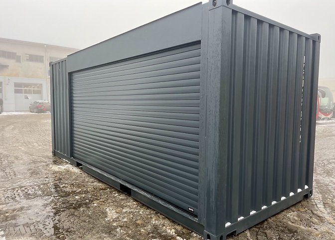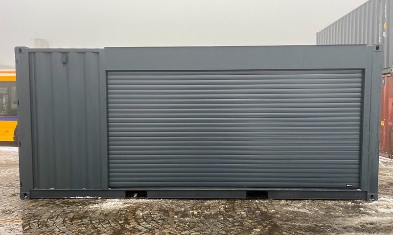 Conteneur Maritime 20 Pieds Peint en Anthracite avec Volet Roulant