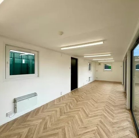 Conteneur modulaire 32×10 pi – Bureau/Cantine avec baies vitrées