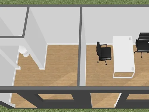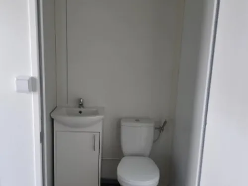 Conteneur social 17m2 + bureau + WC, chêne doré