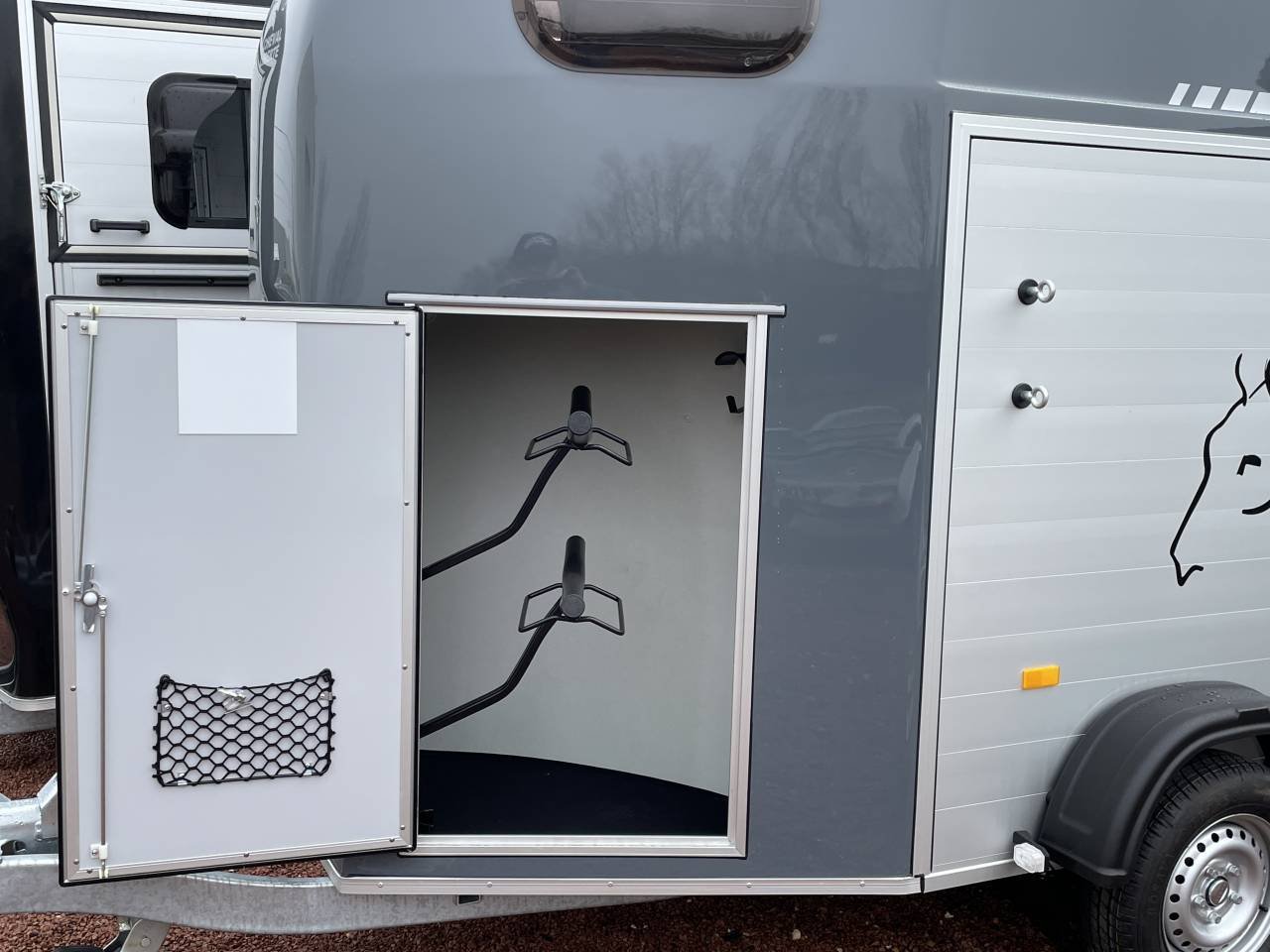 Le Gold One Aluline est un van pour chevaux alliant sécurité, confort et élégance, sans nécessiter de permis BE. Ce modèle 1 place 1⁄2 dispose d’un intérieur spacieux et lumineux, d’un revêtement de sol antidérapant et d’un système d’embarquement pont-porte pour un chargement et déchargement facilité. Sa conception inclut une structure en polyester renforcé, un châssis robuste et des options de personnalisation comme un lanterneau de toit. Ses caractéristiques garantissent durabilité, sécurité maximale, et un design aérodynamique pour une conduite agréable. En résumé, le Gold One est un partenaire dédié au bien-être des chevaux, offrant performance, qualité et élégance.