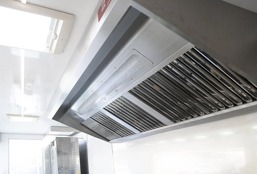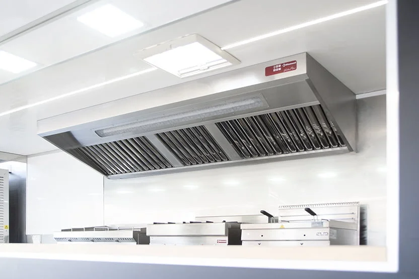 Plan de travail inox avec protection thermique côté cuisson et inox sur les parois